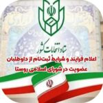 ۱۴۰۴/۷/۳۰ستاد انتخابات کشور در اطلاعیه شماره ۲ فرایند و شرایط داوطلبان عضویت در شوراهای اسلامی روستا را اعلام کرد. ثبت نام از داوطلبان عضویت در شوراهای اسلامی روستا از ۲۴ تا ۳۰ بهمن انجام می شود.