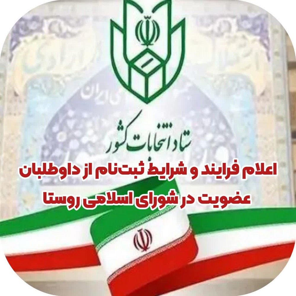 پیرو اطلاعیه شماره «۱» ستاد انتخابات کشور و در اجرای قانون انتخابات شوراهای اسلامی کشور به آگاهی هم میهنان عزیز میرساند، مقرر است انتخابات هفتمین دوره شوراهای مذکور در روز جمعه مورخ ۱۴۰۵/۰۲/۱۱ برگزار گردد؛ به همین منظور ثبتنام از داوطلبان عضویت در شورای اسلامی روستا از روز جمعه مورخ ۱۴۰۴/۱۱/۲۴ تا روز پنجشنبه مورخ ۱۴۰۴/۱۱/۳۰ جمعاً به مدت ۷ روز به عمل خواهد آمد.